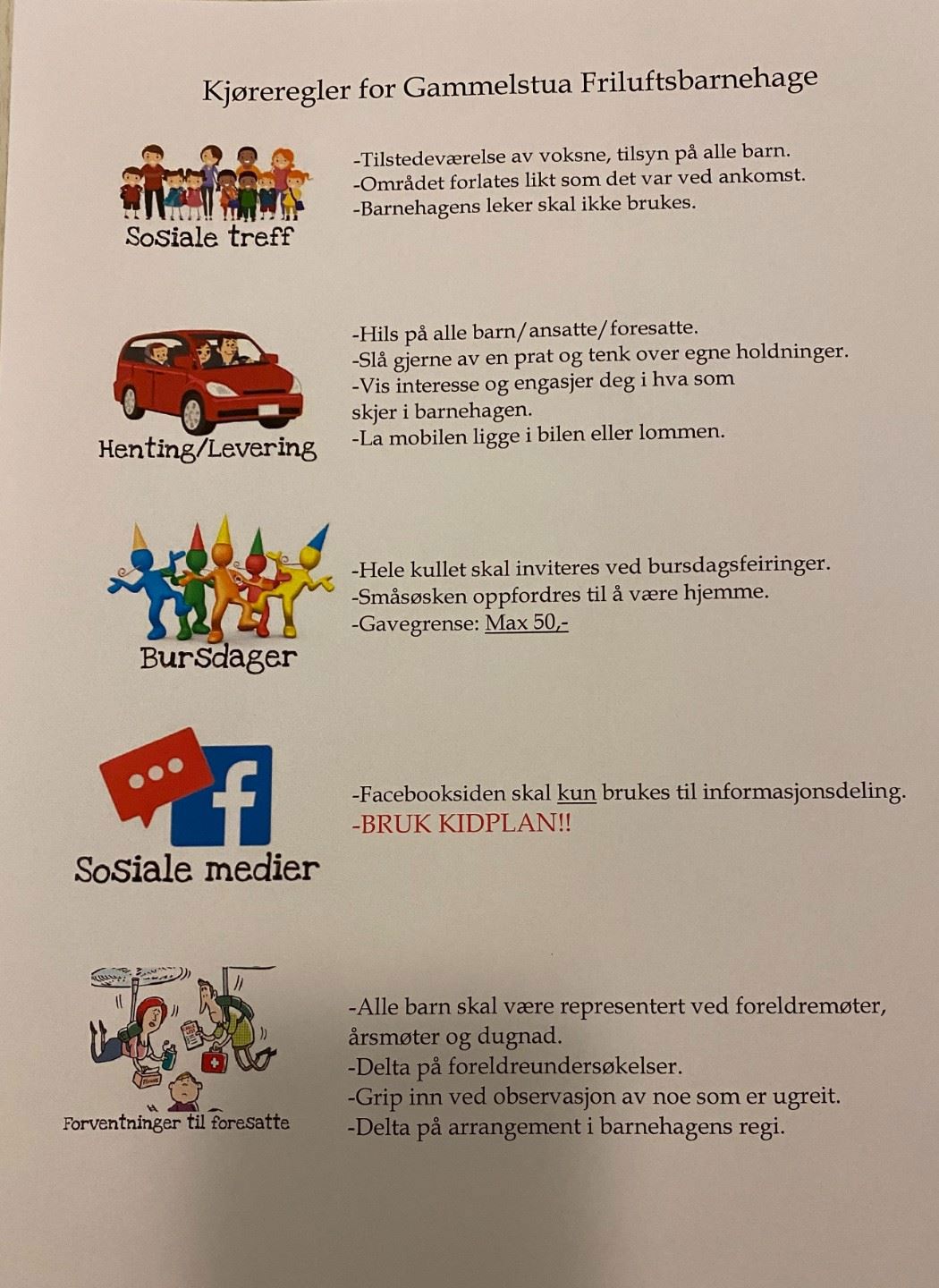 Gi alltid beskjed hvis barnet ikke kommer til barnehagen, senest 09.30. Dette pga av planer og ansatte situasjon. ( Vikarinnleie)